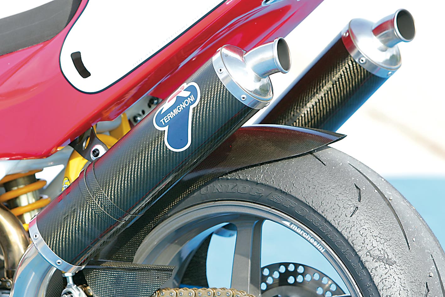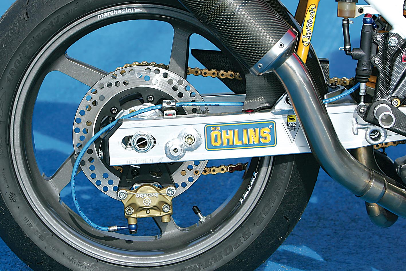 Jeste li ikada pokušali pronaći rabljeni Marchesini stražnji kotač i da je pritom još od magnezija i 5,50-17”? Nema teorije! Koliko god se trudili skresati troškove, kod nekih stvari to jednostavno nije moguće! Takve stvari stoje novaca i s vremenom ne gube na vrijednosti. Mogu se pronaći na e-Bayu, ali neznatno jeftinije od novih i najčešće u paru. Nakon duge potrage riješen je i zadnji kotač, novi. Sve to vrijedi i za Öhlinsov amortizer upravljača s dugom osovinom - još jedan trošak koji je nemoguće izbjeći, no na sreću, malo je lakše pronaći rabljene, pa čak i na ovim prostorima.